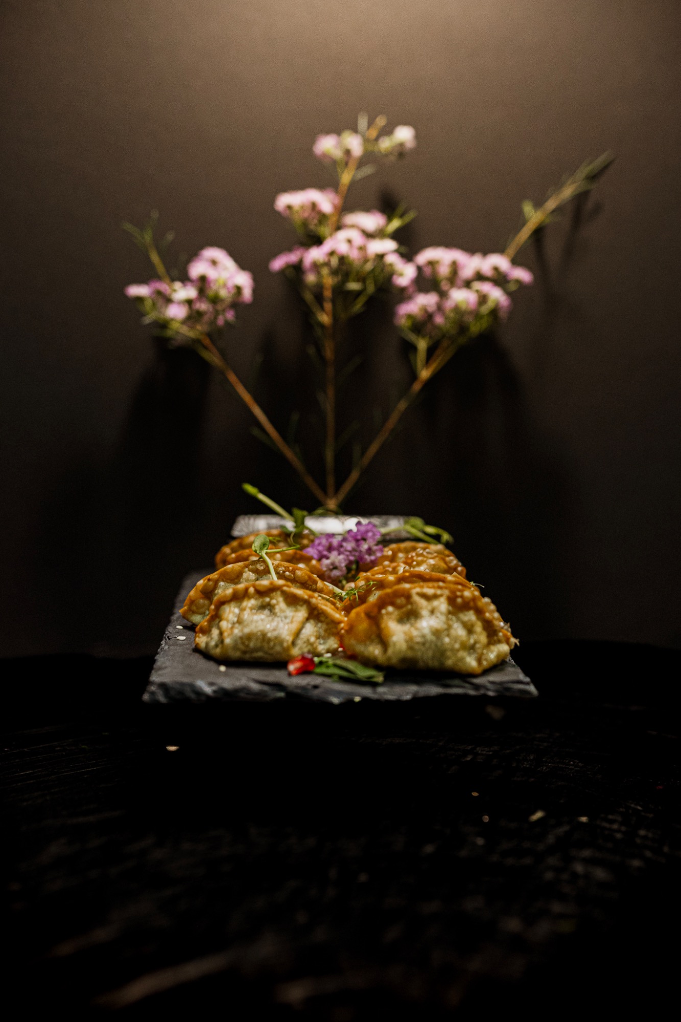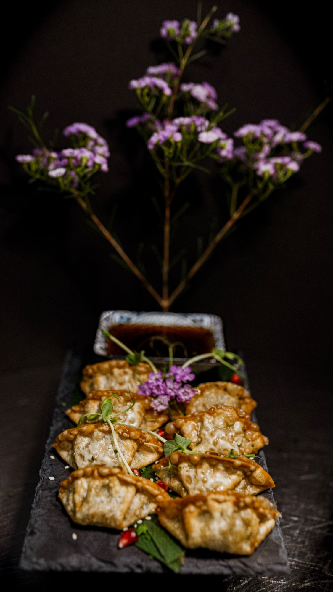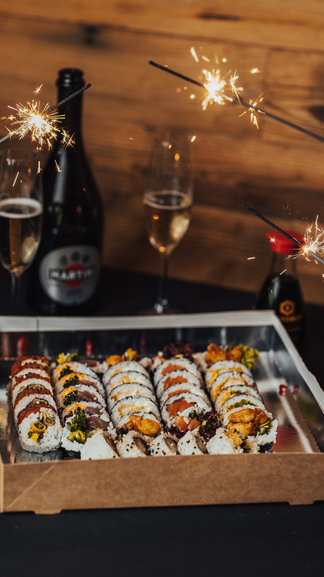 krab w panko, sos spicy mayo, szparag, mango, oshinko, sałata, wasabi, sos chili mango -