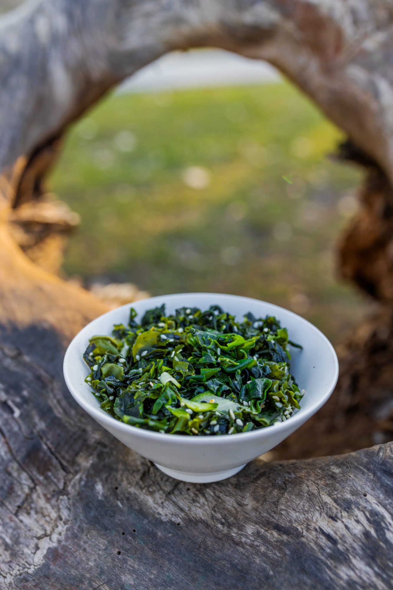 łosoś grillowany, wasabi, całość w tempurze migdałowej -