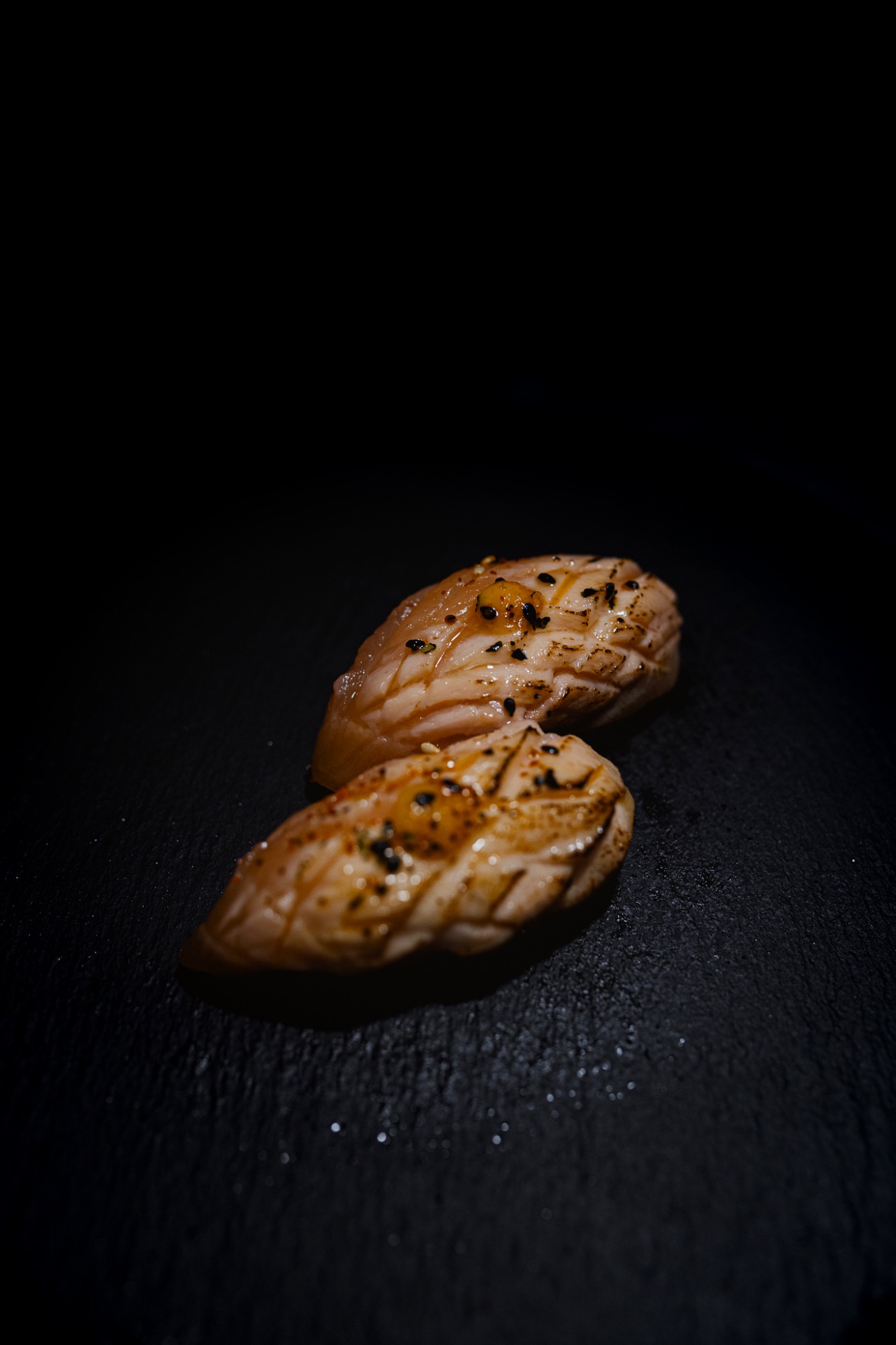 Nigiri z łososiem otulony opalanym tatarem z tuńczyka