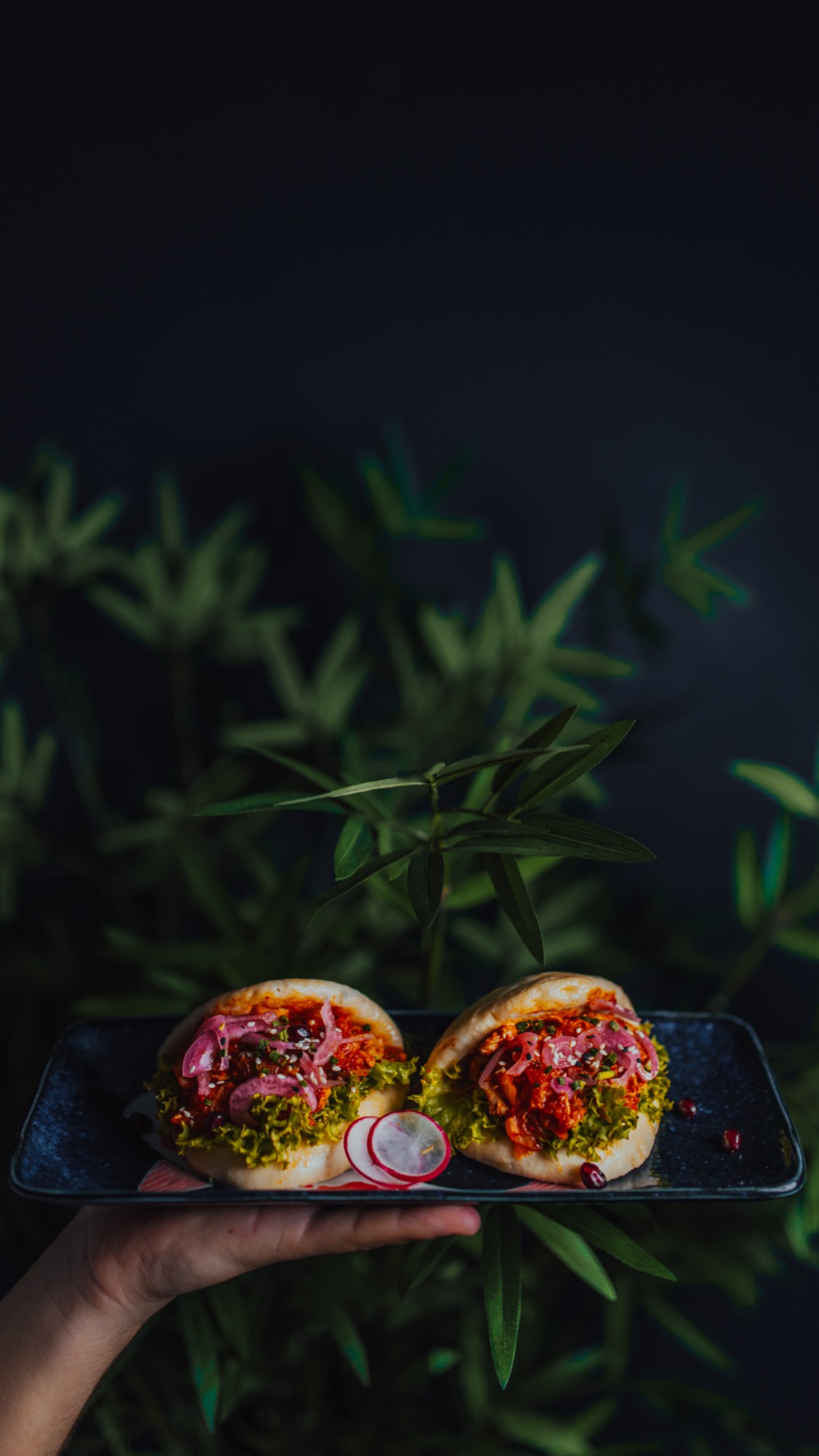 makaron nudle z sosem na bazie mleczka kokosowego, marynowana wieprzowina, chrupiące warzywa, kiełki fasoli mung, cebulka prażona, sezam, szczypiorek -